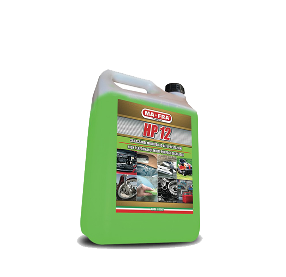 Το πολυκαθαριστικό ΗP12, με την πιο εξελιγμένη τεχνολογικά φόρμουλα της MA-FRA®, είναι ένα καινοτόμο καθαριστικό γενικής χρήσης κατάλληλο για τον καθαρισμό ρύπων όπως γράσα και λάδια. Δραστικό, γρήγορο και πολυχρησ