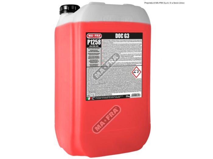 Το DOC G3  της MA-FRA  είναι το ιδανικό καθαριστικό πρόπλυσης για αυτοκίνητα, φορτηγά και μοτοσυκλέτες, προσφέροντας εξαιρετικά αποτελέσματα με απόλυτη ασφάλεια. Συμμορφώνεται με το αυστηρό περιβαλλοντικό πρότυπο ISO 14001 και είναι απαλλαγμένο από Νιτριλοτριοξικό οξύ (NTA), Αιθυλενοδιαμινοτετραοξικό οξύ (EDTA) και φωσφορικά άλατα, εξασφαλίζοντας γρήγορη βιοαποικοδομησιμότητα.